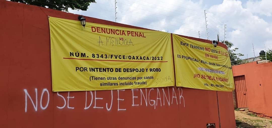 Con base en la información de las autoridades, este sujeto no únicamente se ha dedicado a despojar de predios en el municipio de Oaxaca de Juárez, también han intentado apoderarse de terrenos en Puerto Ángel de donde fueron corridos.