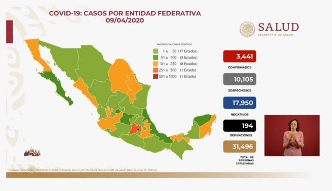 La Secretaría de Salud (Ssa) informó que hasta el momento hay , 10 105 sospechosos y 194 defunciones en México.